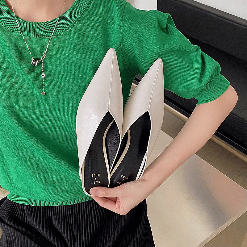 A sculpted V-cut and sharp pointed-toe bring elevated edge to these premium leather mules, designed with a foam-padded insole for lasting comfort and minimalist luxury.